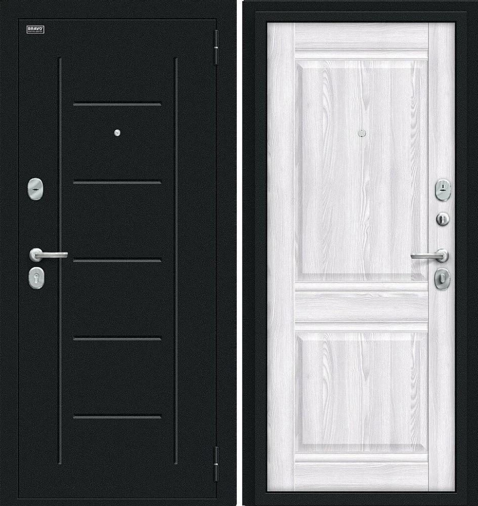 Надежная входная Дверь Браво Некст Kale Букле черное/Riviera Ice премиум класса по цене 31 170 руб. Большая толщина стали защитит от проникновения в ваш дом, квартиру или коттедж. Используется очень качественная фурнитура: замки, цилиндры, ручки, защелки. Покрытие и отделка двери изготовлено под внимательным контролем производителя. Дверь имеет долгий срок службы и гарантию.