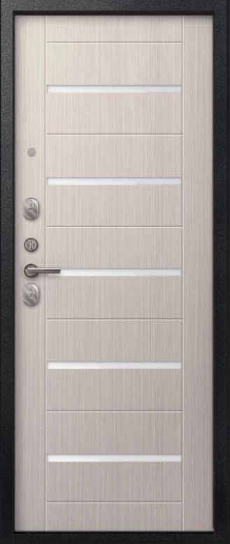 Надежная входная Дверь V-05 Черный муар - Лиственница светлая премиум класса по цене 37 500 руб. Большая толщина стали защитит от проникновения в ваш дом, квартиру или коттедж. Используется очень качественная фурнитура: замки, цилиндры, ручки, защелки. Покрытие и отделка двери изготовлено под внимательным контролем производителя. Дверь имеет долгий срок службы и гарантию.
